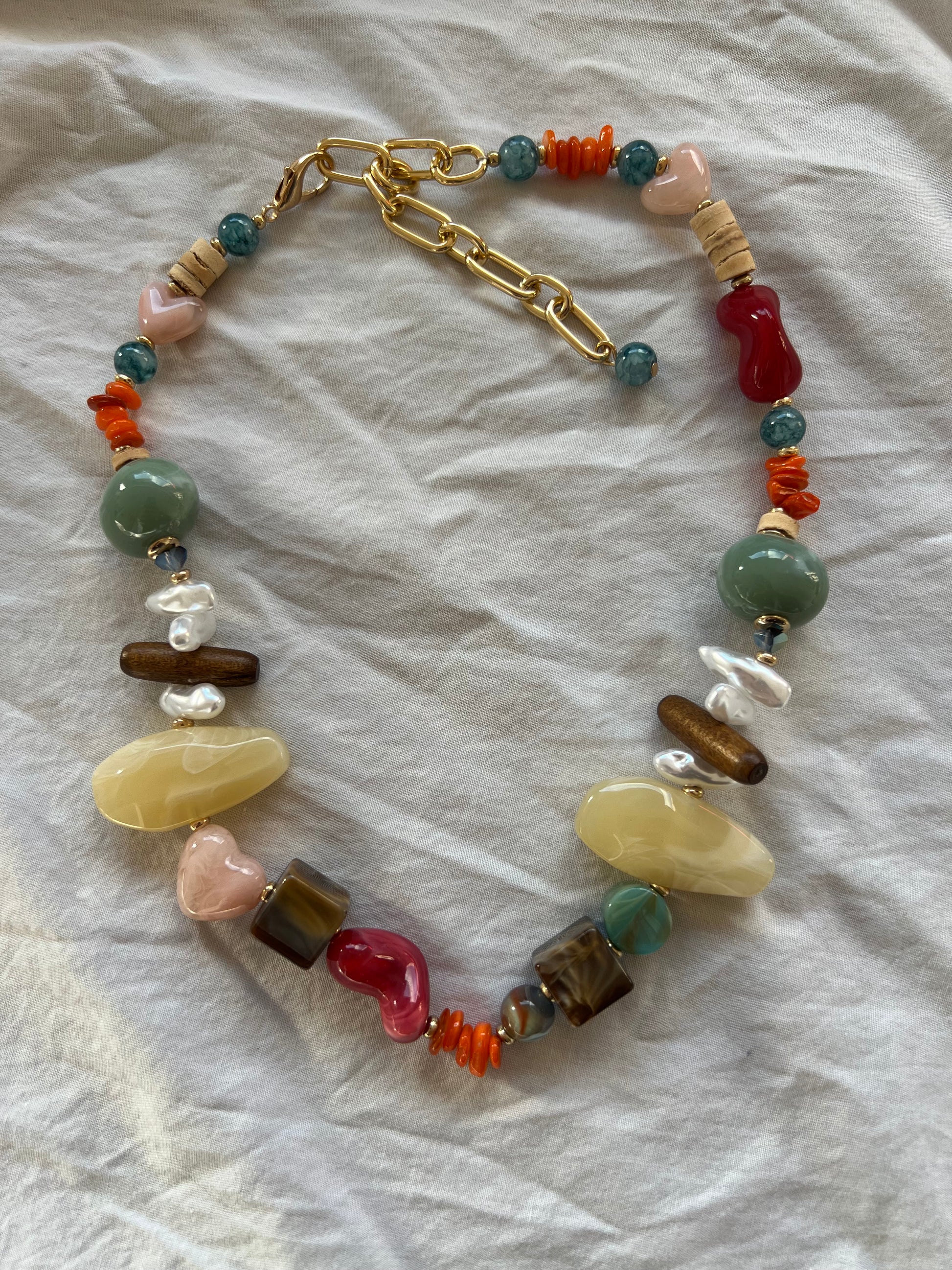 collar con piedras de colores y cadena dorada